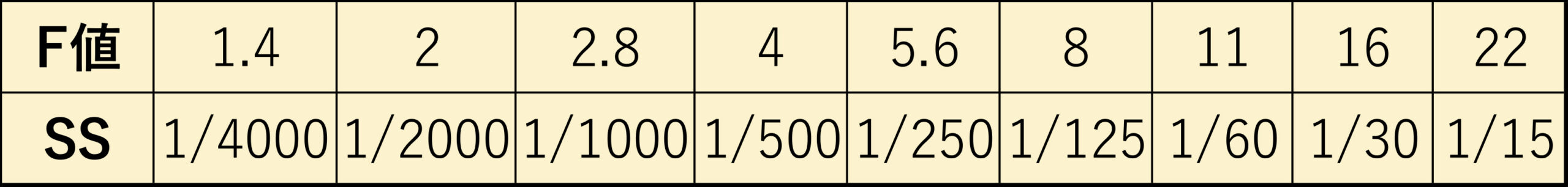 光の具合が丁度良いとしたら…この表のように設定します↓